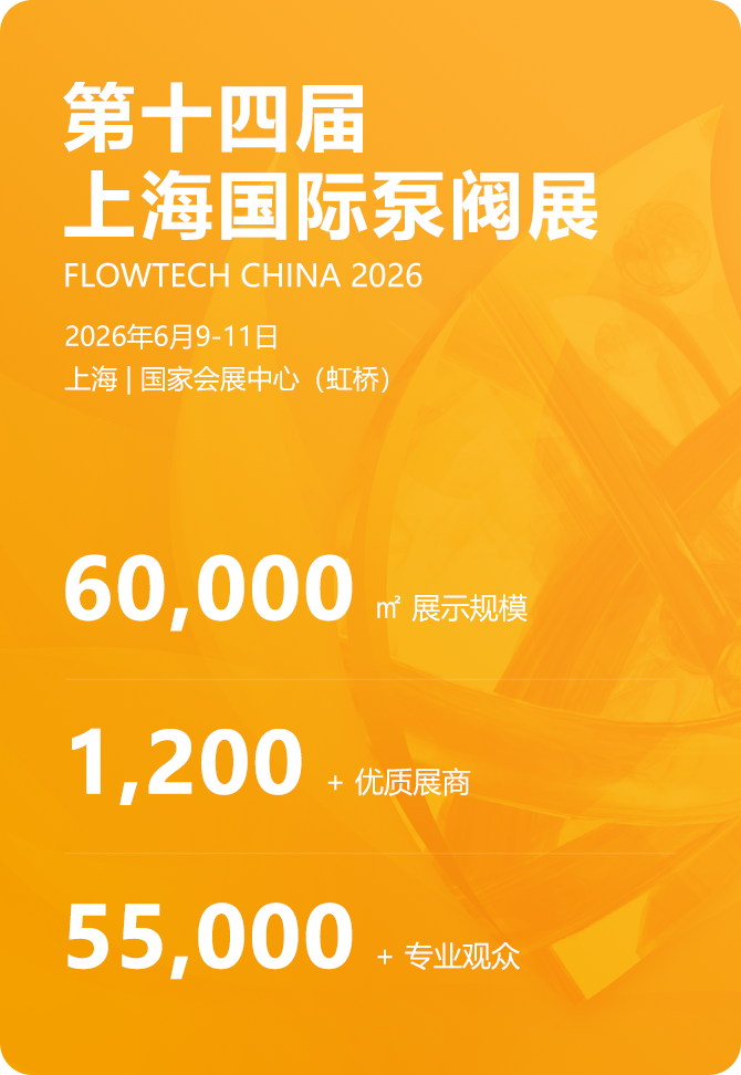 第十四屆上海國際泵管閥展覽會(簡稱:上海國際泵閥展)將于2026年6月在上海國家會展中心(虹橋)隆重開幕!